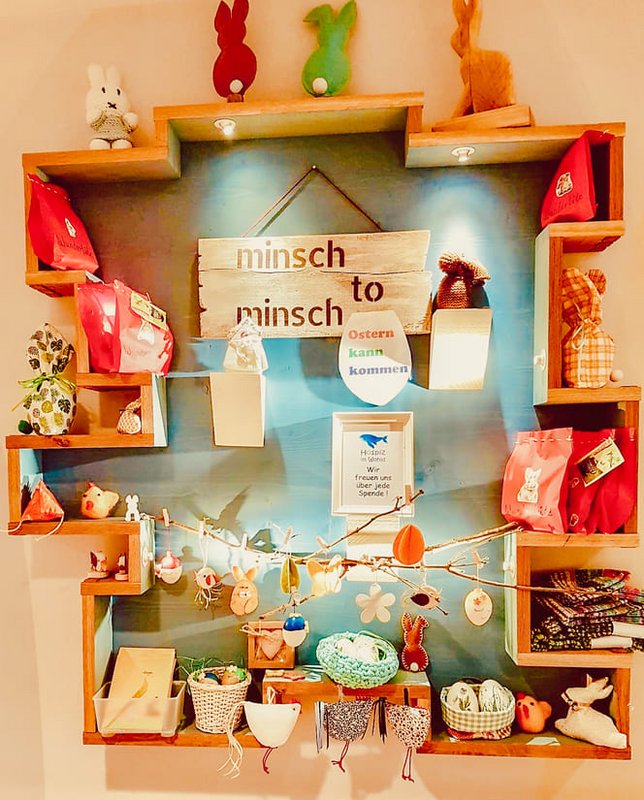Pünktlich zum Frühlingsanfang hat unser Kreativteam die Vorbereitungen für das Osterfest insofern abgeschlossen, als die gebastelten Kostbarkeiten nun in die Welt reisen dürfen: zum Bespiel im Eingang unseres Hauses, in dem wir gerne gegen eine kleine Spende die eigens erstellten Kunstwerke ausgeben.